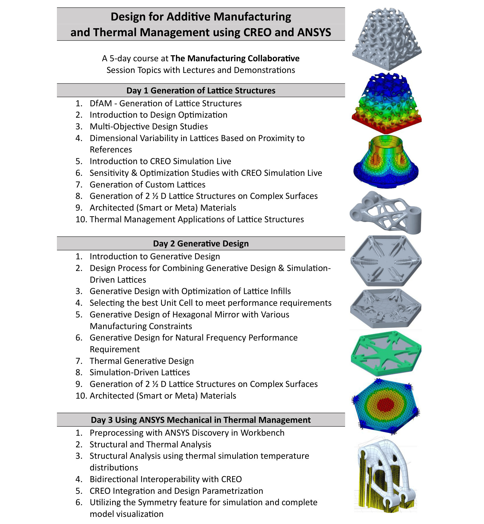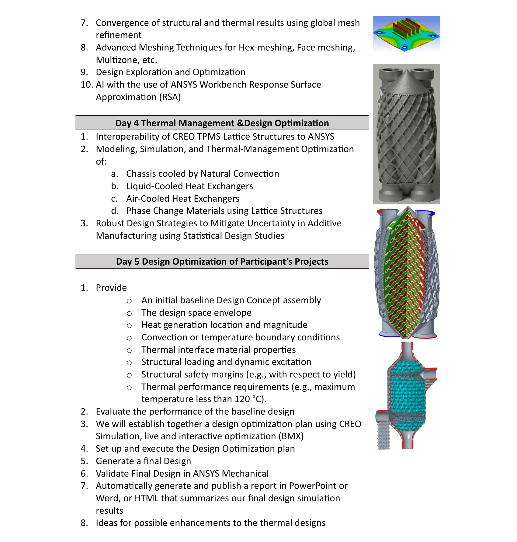 5 Day Course – Design for Additive Manufacturing and Thermal Management using CREO and ANSYS
